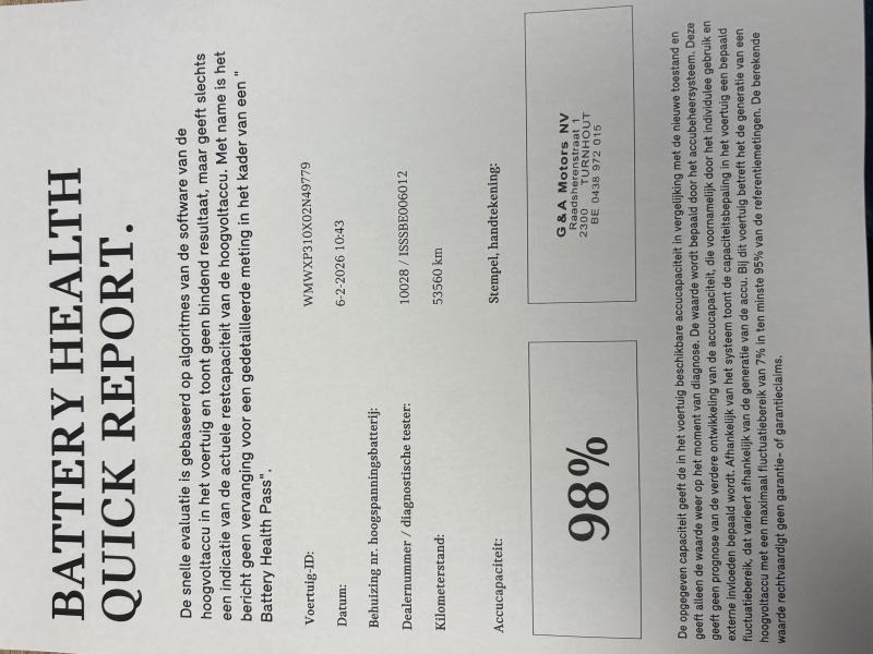Zwart lederen interieur 0230 EU-specifieke extra werkzaamheden 0249 Multifunctie v stuurwiel 0255 Sportstuurwiel leder 02F2 MINI LM-velg Cosmos Spoke zwart 02PA Wielbout met slot 02VB Bandenspanningsweergave 02VG Performance control 0302 Alarmsysteem 0313 Buitenspiegel elek. inklapbaar 0322 Comforttoegangssysteem 03AG Achteruitrijcamera 0420 Verduisterde ruiten achter 0423 Vloermat velours 0430 Binnen-/buitenspiegel, aut. dimmend 0431 Binnenspiegel, automatisch dimmend 0450 Hoogteverstelling bijrijdersstoel 0470 Isofix-System 0473 Armsteun voor 0481 Sportstoel 0493 Opbergpakket 0494 Stoelverwarming bestuurder/passagier 04AA Dakhemel antraciet 04C1 Colour Line Carbon Black 04E7 Int. surface MINI electric 04T9 Warmtepomp 04U6 AC laadpunt Professional 04U7 Snelladen gelijkstroom 04U9 Akoestische voetgangersbescherming 04V9 MINI Excitement-pakket 04VA MINI Driving Modes 0508 Park Distance Control PDC 0521 Regensensor 0534 Automatische airco 0544 Snelheidsregeling met remwerking 0548 Kilometersnelheidsmeter 0550 Boordcomputer 0552 Adaptieve LED-koplamp 0563 Lichtpakket 05A1 LED Mistlamp 05AA Mistachterlicht 05AS Driving Assistant 05DP Parkeerassistent 0654 DAB-ontvangermodule 0674 Hifi-systeem Harman Kardon 06AD MINI Head-Up Display 06AE Teleservices 06AF Wettelijke noodoproep 06AG eDrive diensten 06AK Connected Drive Services 06AM Real-Time Traffic Information 06AP Remote Services 06CP Smartphone-integratie 06FP Radio MINI Visual Boost 06NM MINI Connected 06NT MINI Connected XL 06NW Telefonie met draadloos opladen 06UM MINI navigatiesysteem 06WB Multifunctioneel instrumentendisplay 0785 Knipperlichten wit 07GK Connected Navigation Plus 07GN Trim L 07GR INTERIOR STYLE MINI ELECTRIC 0868 Taalversie Nederlands 0886 Boorddocumentatie Nederlands 08S3 Autom. vergrendeling bij wegrijden 09AA Bescherming buitenzijde A050 AGM-accu 50 AH